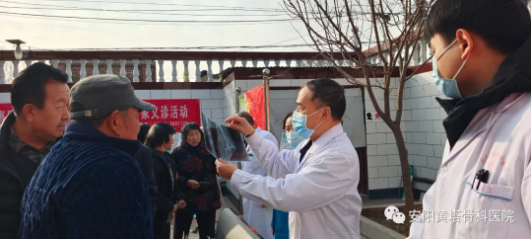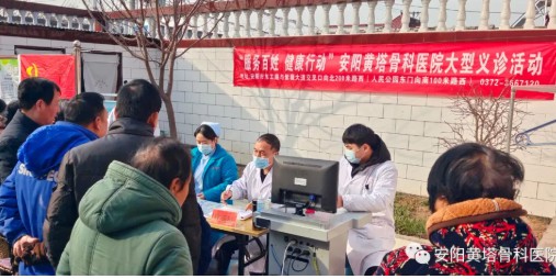 為全 面貫徹“以患者為中心”的服務理念,為群眾提供便捷的醫療服務,進一步方便群眾就醫,提高群眾的骨骼健康意識,安陽黃塔骨科醫院制定“百次義診”計劃,爭取在本年度進行不少于100次義診活動,立足于醫院骨科專長,為群眾提供實實在在的骨骼健康服務。2022年1月3日,“年度百次義診計劃”第 一場義診活動順利進行,此次義診由何宗戰院長、明立衛主任帶領義診團隊來到安豐鄉施家河村衛生室,為當地群眾們提供免費檢查、咨詢,發放膏藥,測量血壓、尿酸、骨密度等,寒冬送暖,守護廣大群眾的骨骼健康。