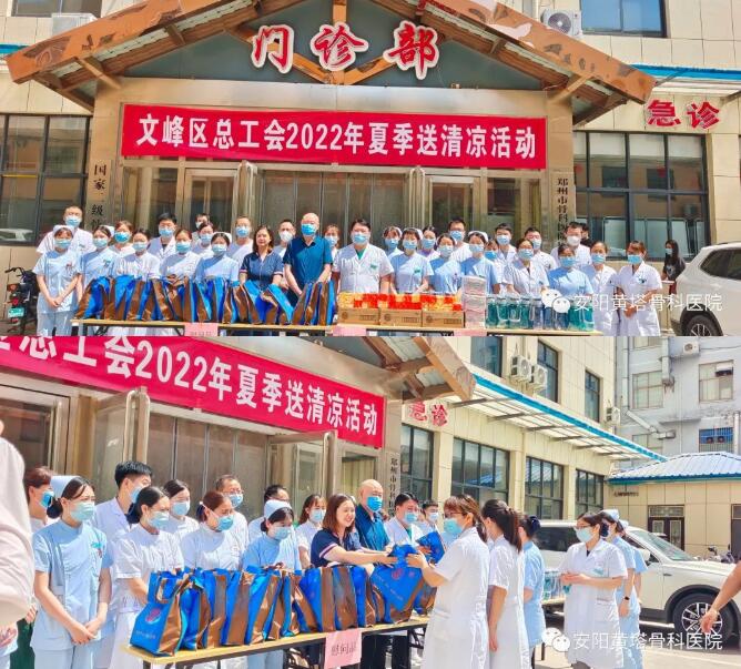 安陽(yáng)黃塔骨科醫(yī)院工會(huì)主席高靜將慰問(wèn)品一一送至各個(gè)科室一線工作人員手中,在疫情防控常態(tài)化背景下,今年的暑期對(duì)廣大醫(yī)務(wù)工作者來(lái)說(shuō)是場(chǎng)特別的考驗(yàn),核酸檢測(cè)及預(yù)檢分診等醫(yī)護(hù)人員始終堅(jiān)守在防護(hù)一線,這一切都牽動(dòng)著工會(huì)組織的心,高主席細(xì)心囑咐高溫工作條件下要及時(shí)補(bǔ)充水分,合理安排休息,防止中暑。